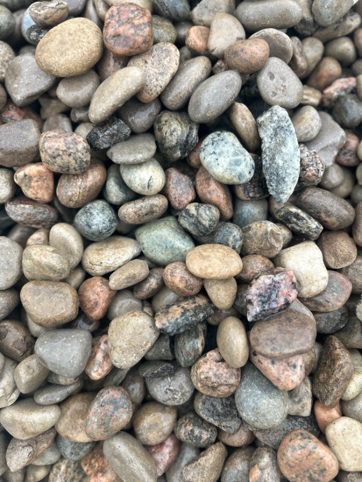 Our Small River Rock is washed and screened for their uniformed size. Our river rock is a mix of granite and limestone boulders, about 75% of the stone in our small river rock mix is granite. Small River Rock is commonly used for: